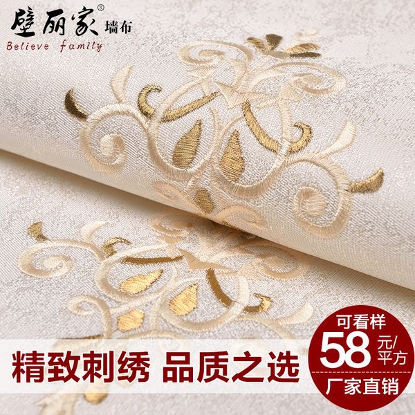 壁丽家欧式双色刺绣花卧室客厅酒店别墅背景墙无缝墙布壁布非墙纸 壁丽家 北京景程海瑞科技有限公司