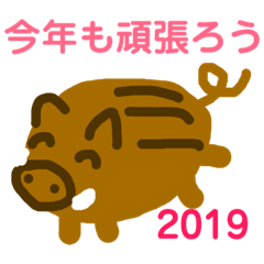 Lineスタンプ 19いのしし年賀 8種類 1円